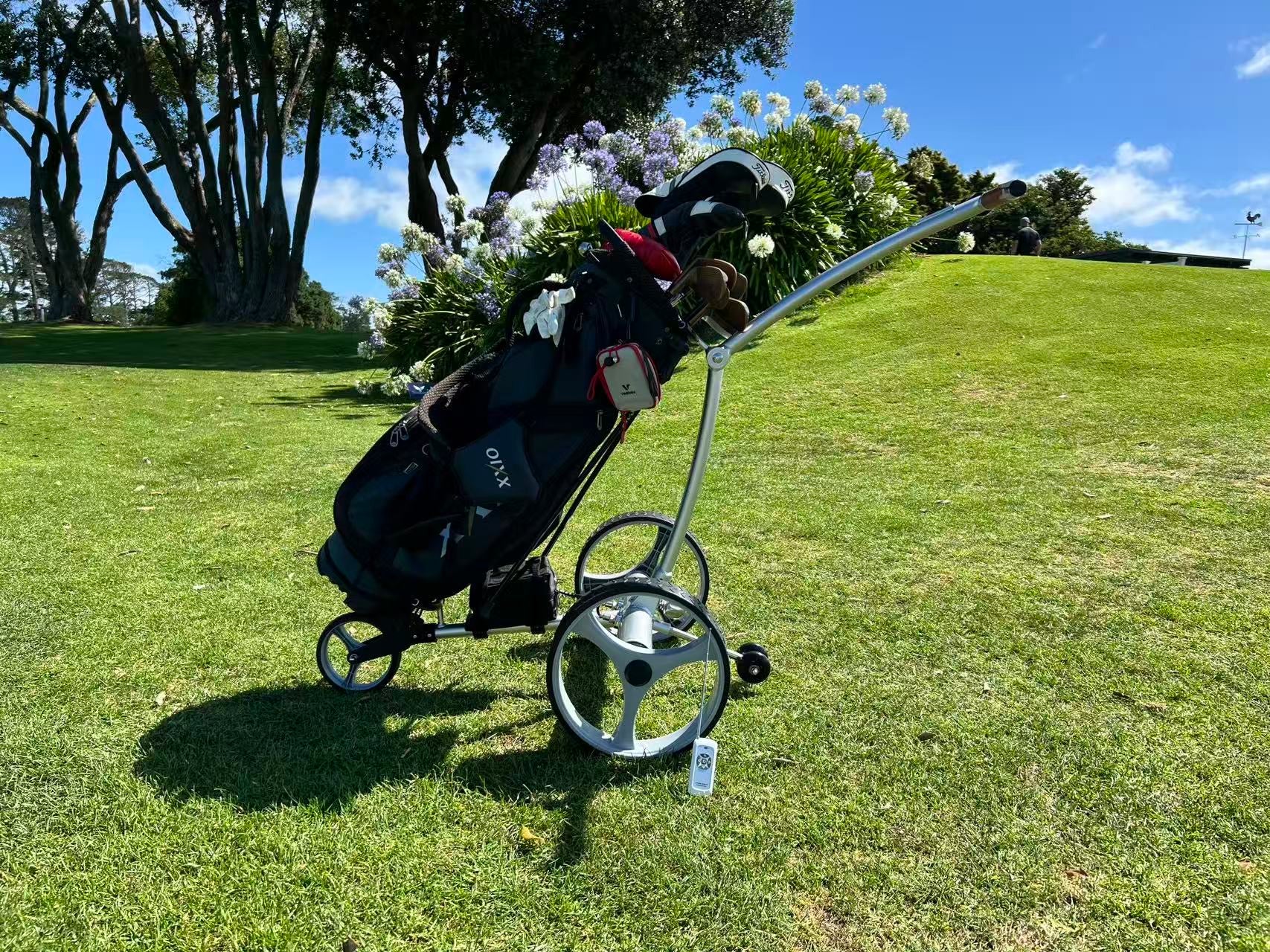 The TopCaddy TP01R is your new golf buddy on wheels. This electric trolley features a sturdy 2.00mm aluminum frame that's tough enough to handle anything while staying light enough to push around with ease. Built to go the distance, it's the perfect companion for every round.